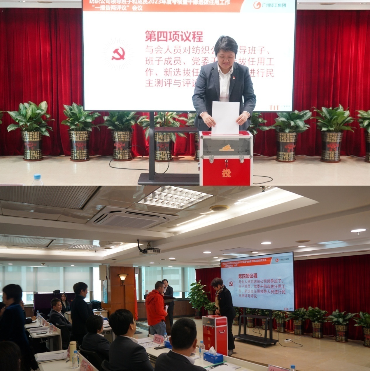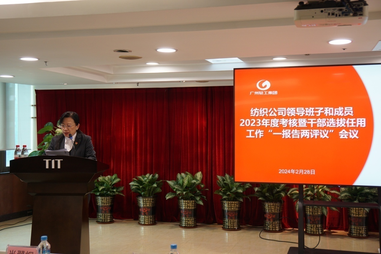2月28日下午,紡織公司黨委召開領(lǐng)導(dǎo)班子和成員2023年度述職暨干部選拔任用工作“一報(bào)告兩評(píng)議”會(huì)議。會(huì)議由紡織公司黨委副書記、工會(huì)主席丘海瀾主持。紡織公司領(lǐng)導(dǎo)班子成員、本部中層管理干部、屬下企業(yè)領(lǐng)導(dǎo)班子成員、企業(yè)“一代表兩委員”以及黨員干部群眾代表參加了會(huì)議,廣州輕工集團(tuán)黨委組織部派員出席了會(huì)議。