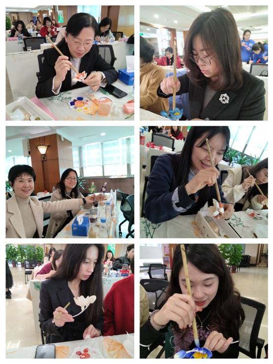 在巾幗非遺文化體驗(yàn)——制作香薰通草花環(huán)節(jié)。在大新公司非遺文化研學(xué)特聘通草花繪制技藝傳承人顏康平老師的講授下,大家開拓視野,增長知識(shí),在學(xué)史溯源了解通草花史記、功效和繪制工藝后,紛紛凝神握筆,巧心妙思動(dòng)手制作香薰通草花,感受中華非遺文化的魅力。非遺通草,揚(yáng)我非遺;香薰飄香,舒緩賦能。一朵朵精美的通草花在她們手中綻放,寓意著新時(shí)代紡織女工在傳承與創(chuàng)新中綻放光彩。