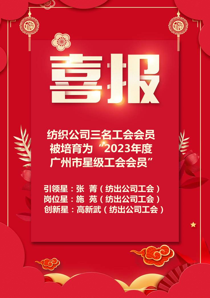 喜報(bào):紡織公司三名工會(huì)會(huì)員被培育為“2023年度星級(jí)工會(huì)會(huì)員”