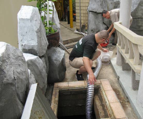 在食物中毒演練完成后,相關人員繼續(xù)參加有限空間救援的演練。模擬在生活水池的清洗過程中由于池內氧氣不足,導致作業(yè)人員窒息。指揮中心命令救援人員立即攜帶救援設備趕到現(xiàn)場,啟動鼓風機對池內換氣通風,救援人員穿上背帶并固定安全繩后入池開展救援,成功轉移池內人員到空氣新鮮處交醫(yī)護人員救治。本次演練讓大家對有限空間安全作業(yè)的操作流程和救援措施熟記于心,筑牢了有限空間作業(yè)安全防線。