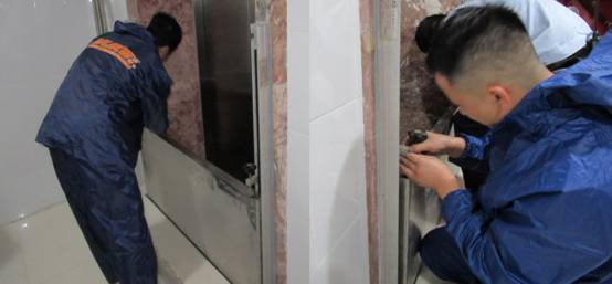 隨后還模擬了一旦洪水進入地下室后,對電梯設(shè)備進行安裝防水板的實操演練。