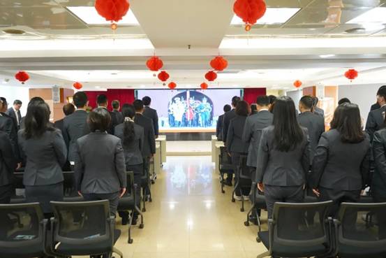 上午9點(diǎn),公司在廣德大廈15樓禮堂舉行了升國旗儀式,全體員工參與。簡(jiǎn)瑋儀代表領(lǐng)導(dǎo)班子在儀式上致辭。她指出,2025年是“十四五”收官之年,公司在2025年開局就實(shí)現(xiàn)了開門紅,希望大家在新的一年繼續(xù)堅(jiān)定信心,開拓進(jìn)取,全力沖刺“十四五”目標(biāo),為“十五五”開局起步奠定堅(jiān)實(shí)基礎(chǔ),為強(qiáng)國建設(shè)、中華民族偉大復(fù)興作出紡織人新的更大貢獻(xiàn)。