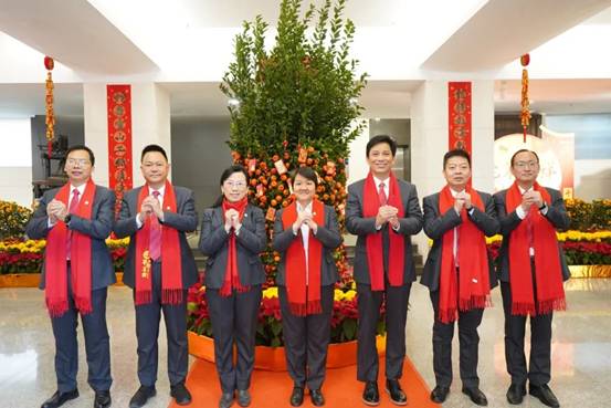 早上8點(diǎn),紡織公司黨委書記、董事長簡(jiǎn)瑋儀帶領(lǐng)全體領(lǐng)導(dǎo)班子成員和各職能部門負(fù)責(zé)人在廣德大廈一樓大堂,整齊列隊(duì)熱烈歡迎復(fù)工的員工,為他們送上新春的美好祝福。