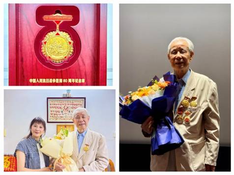 黃鎮(zhèn)生同志生于1931年,年少時便投身革命,是一位歷經(jīng)戰(zhàn)火洗禮的革命前輩。1942年,民族危亡之際,他毅然加入抗戰(zhàn)隊伍,在戰(zhàn)場上英勇奮戰(zhàn)。解放戰(zhàn)爭時期,他作為人民解放軍的一員,為中國人民解放事業(yè)作出了重要貢獻。為表彰他的歷史功績,黨中央、國務(wù)院、中央軍委授予他 “中國人民抗日戰(zhàn)爭勝利80周年紀念章”。這枚沉甸甸的紀念章,是國家對黃老英雄抗戰(zhàn)功績的高度認可,也是全體紡出人的光榮與驕傲。轉(zhuǎn)業(yè)后,黃鎮(zhèn)生同志在廣州外貿(mào)系統(tǒng)多個崗位繼續(xù)奉獻光和熱,曾任紡出公司工會主席,將部隊的優(yōu)良作風融入地方建設(shè)與企業(yè)發(fā)展中。