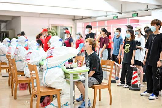排隊(duì)、錄入信息、咽拭子采樣,在集中采樣點(diǎn),師生員工全程佩戴口罩,自覺(jué)間隔一米,按10人一組分批分次有序前往采樣區(qū),開(kāi)設(shè)10條通道,在現(xiàn)場(chǎng)醫(yī)護(hù)人員的引導(dǎo)下,有序進(jìn)行核酸檢測(cè)的采樣。