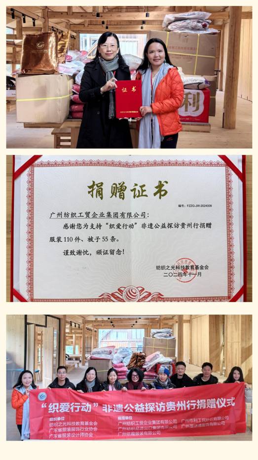 近日,紡織公司黨委副書記丘海瀾一行參加了由紡織之光科技教育基金會(huì)、中國(guó)婦女發(fā)展基金會(huì)主辦,中國(guó)服裝協(xié)會(huì)、中國(guó)紡織工業(yè)企業(yè)管理協(xié)會(huì)、廣東省服裝服飾行業(yè)協(xié)會(huì)、廣東省服裝設(shè)計(jì)師協(xié)會(huì)協(xié)辦的“織愛行動(dòng)”非遺公益探訪貴州行活動(dòng)。今年,紡織公司旗下“利工民汗衫背心制作技藝”成功入選廣州市荔灣區(qū)第八批非物質(zhì)文化遺產(chǎn)代表性項(xiàng)目名錄。此次活動(dòng)希望通過對(duì)非遺手工藝進(jìn)行深入調(diào)研,探討融合發(fā)展道路,同時(shí)向困境婦女及家庭傳遞溫暖。一方面通過捐款、捐贈(zèng)紡織服裝物資進(jìn)行直接幫扶;另一方面通過賦能傳統(tǒng)手工技藝,引導(dǎo)紡織服裝行業(yè)品牌企業(yè)、設(shè)計(jì)師與傳統(tǒng)手工技藝融合共益共生發(fā)展,讓傳統(tǒng)手工技藝從“指尖技藝”轉(zhuǎn)變?yōu)椤爸讣饨?jīng)濟(jì)”,推進(jìn)就業(yè)創(chuàng)業(yè)、助力困境女性可持續(xù)發(fā)展,體現(xiàn)了企業(yè)的社會(huì)責(zé)任感和文化傳承的使命。