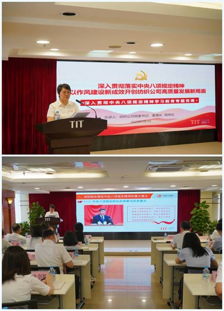 會(huì)上,黨委書記、董事長(zhǎng)簡(jiǎn)瑋儀作2025年度集體廉政談話,并圍繞深刻領(lǐng)會(huì)落實(shí)中央八項(xiàng)規(guī)定精神的重大意義、如何從嚴(yán)從實(shí)落實(shí)落細(xì)中央八項(xiàng)規(guī)定精神以及對(duì)紡織公司強(qiáng)化作風(fēng)建設(shè)推動(dòng)高質(zhì)量發(fā)展等三個(gè)方面講授了《深入貫徹落實(shí)中央八項(xiàng)規(guī)定精神 以作風(fēng)建設(shè)新成效開創(chuàng)紡織公司高質(zhì)量發(fā)展新局面》專題黨課,進(jìn)一步推進(jìn)紡織公司深入貫徹中央八項(xiàng)規(guī)定精神學(xué)習(xí)教育走深走實(shí)。在作2025年度集體廉政談話時(shí),她強(qiáng)調(diào)要始終保持清醒、增強(qiáng)廉潔自律意識(shí),筑牢拒腐防變的思想防線,不辜負(fù)組織的信任與重托,為紡織的持續(xù)健康發(fā)展提供堅(jiān)強(qiáng)的紀(jì)律保障:一是提高政治站位,要把旗幟鮮明講政治作為根本要求;二是堅(jiān)持守正創(chuàng)新,要在推定企業(yè)改革發(fā)展上積極作為;三是認(rèn)真履職盡責(zé),要在守住風(fēng)險(xiǎn)底線紅線上彰顯擔(dān)當(dāng);四是壓緊壓實(shí)責(zé)任,要在凝聚管黨治黨合力上作出表率;五是強(qiáng)化作風(fēng)建設(shè),要以優(yōu)良作風(fēng)展現(xiàn)國(guó)企干部新形象。在講授專題黨課時(shí),她指出面對(duì)新時(shí)代新任務(wù)新要求,要以永遠(yuǎn)在路上的執(zhí)著,用更高的標(biāo)準(zhǔn)、更嚴(yán)的要求持續(xù)加強(qiáng)作風(fēng)建設(shè),把作風(fēng)建設(shè)與黨的建設(shè)各項(xiàng)工作緊密結(jié)合起來(lái),與推進(jìn)改革發(fā)展穩(wěn)定各項(xiàng)任務(wù)緊密結(jié)合起來(lái),以刀刃向內(nèi)的勇氣抓作風(fēng),以久久為功的韌勁促發(fā)展,把作風(fēng)建設(shè)的成果轉(zhuǎn)化為干事創(chuàng)業(yè)的強(qiáng)大動(dòng)能,奮力譜寫紡織公司高質(zhì)量發(fā)展新篇章。